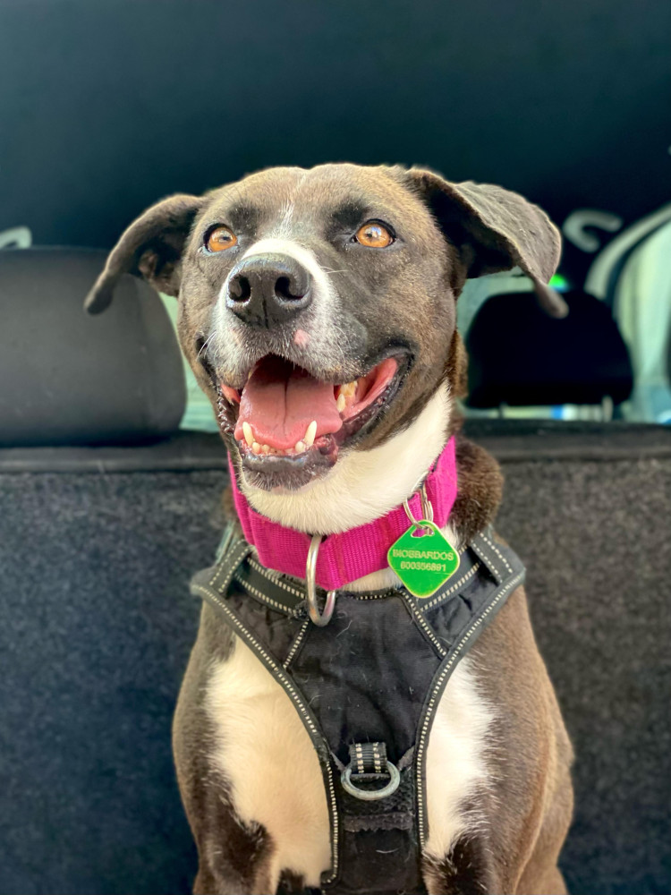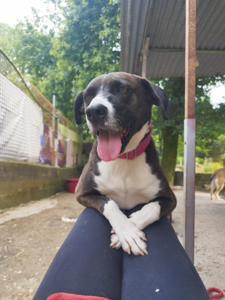 Hola, soy Milka ¿Sabes por qué me llamo así? Porque soy dulce como el chocolate. Además, me encantan los paseos, de hecho, esto de vivir en un canil no lo llevo demasiado bien.