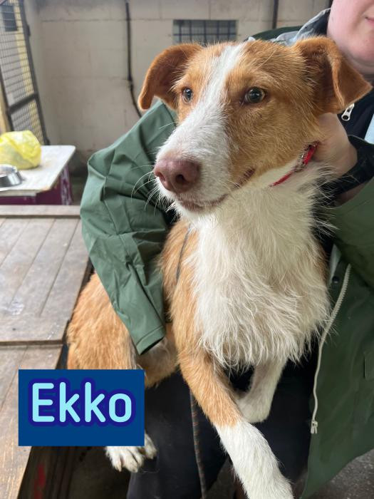 Ekko proviene del caso +50 del que ya os hemos hablado: perros en malas no, sino pésimas condiciones… pasando hambre ya que eran muchísimos y sin saber lo que es pisar una clínica veterinaria.