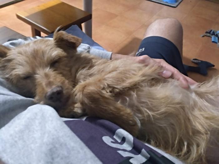 Como tantos outros podencos utilizados para caza ROQUITO chegou a nos en non moi boas condicións... . Treme moito, ten os oidiños fatal precisa coidados que no refuxio nos é moi complicado facer para que mellore canto antes...Super tranquilo... So quere estár nun lugar quentiño e durmir...