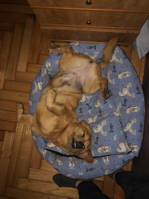 É unha cadeliña moi tranquila que non merecía sentir o abandono por segunda vez na vida, está moi triste no refuxio.