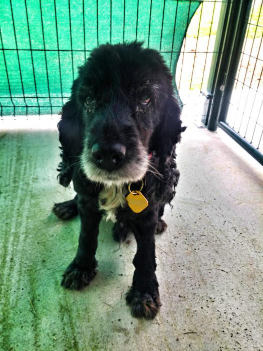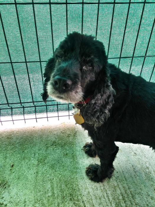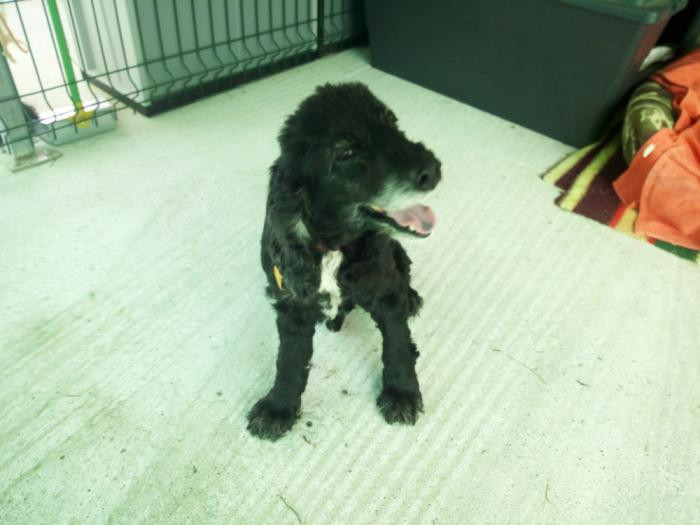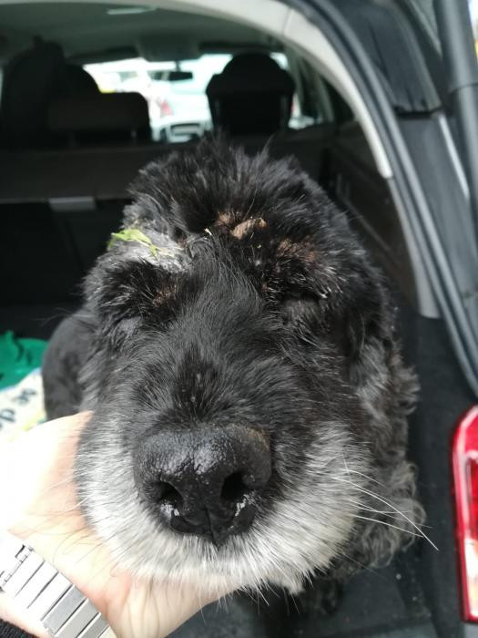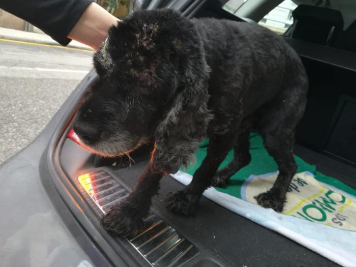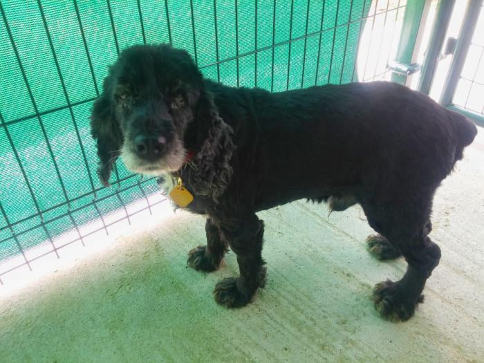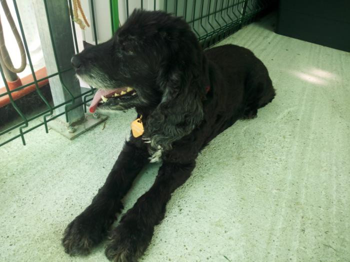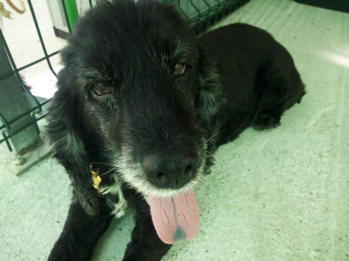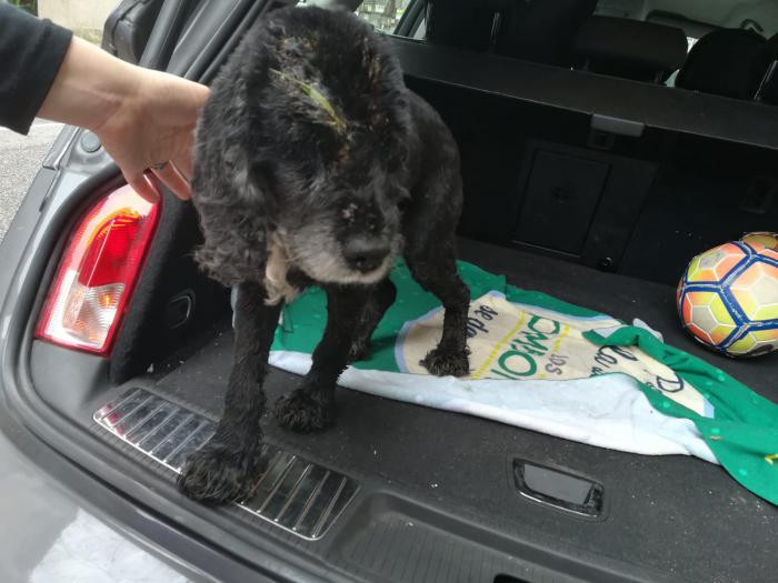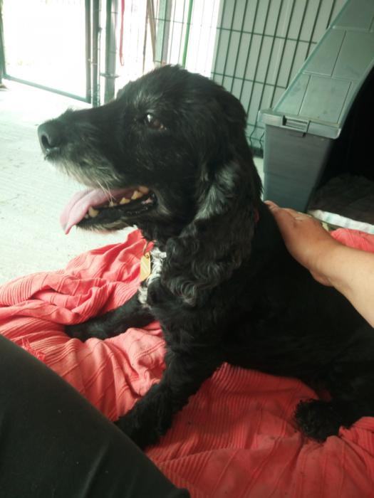 Este canciño apareceu preto dun mes no medio dunha estrada... Está a recuperarse dunhas lesións na pel pero xa esta moito mellor. Ten algo de falta de visión inda que oriéntase moi ben. Moi sociable, pasea moi ben e é coma un osiño amoroso.A pesar diso non é maior, ten sobre 5 ou 6 aniños. Busca sempre os mimiños e gústalle que o collan no coliño. TODO AMOR