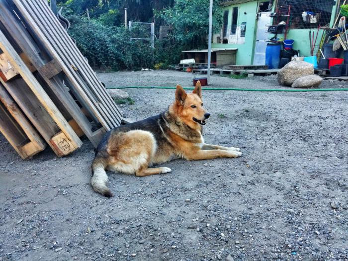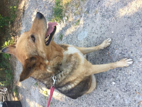 Esta pastorciña apareceu no medio da autovía aparentemente golpeada por un coche. Agora atópase no refuxio xa ben agardando a sua oportunidade. E moi tranquila e boa. Sabe sentarse e pasea con correa perfectamente.