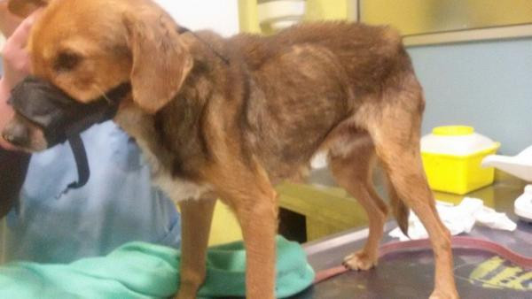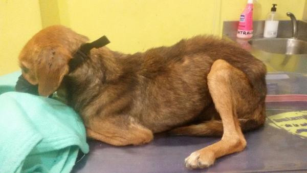 O luns deronnos aviso deste canciño nunha parroquia de Salvaterra, estaba nos ósos completamente, recollímolo para prestarlle asistencia sanitaria urxente e quedou ingresado con suero na clínica, despois de varias probas diagnosticaronlle insuficiencia renal a pesar de ser un caniño xoven, precisa un fogar de acollida en canto se recupere, no refuxio é imposible que entre nese estado ademais de que tampouco temos oco