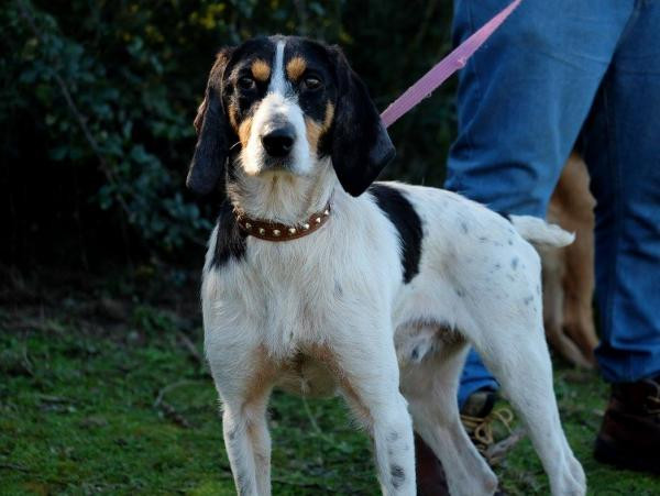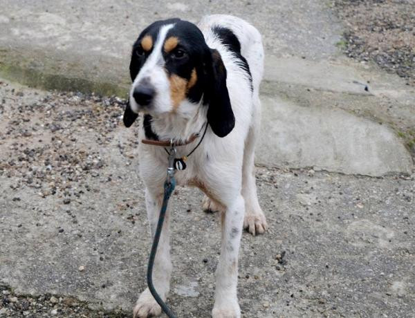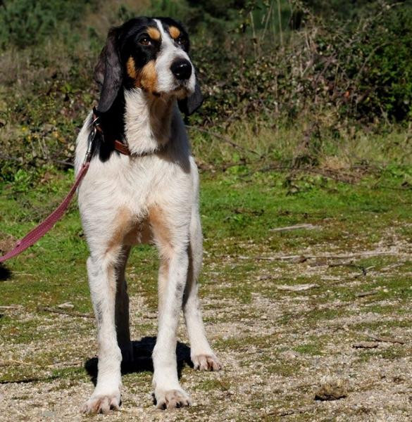 COLEGA, este cruce de Sabueso, imaxinamos que despoxo da caza agora que rematou a tempada, foi recollido de urxencia cando foi atopado en moi mal estado xunto á súa compañeira Ayana nun monte en Ponteareas. Ela tiña un tumor moi grande e el estaba nos osos, tiña tos é infección de oídos. Agora Colega xa está recuperado e espera impaciente un fogar, é un canciño xoven, sociable e moi agradecido e cariñoso que xa esqueceu todo o malo pasado na súa vida e desexa comezar a disfrutar dunha nova vida en familia.