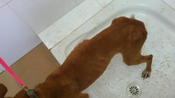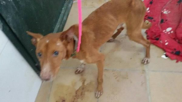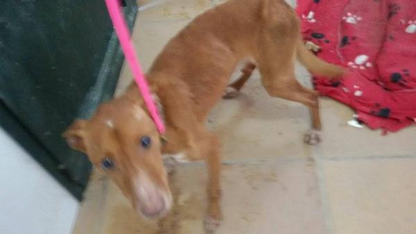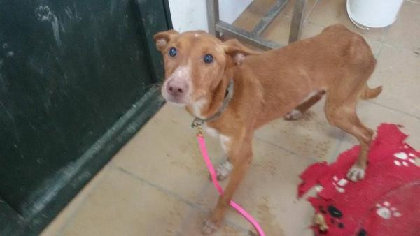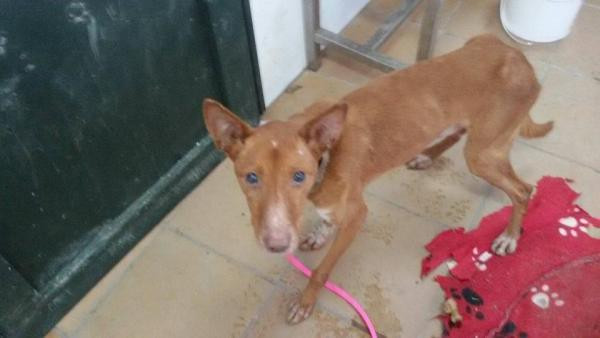 TIN foi recollido nunha parroquia de Mondariz onde estaba abandonado e en condicións lamentables. Totalmente famélico e deshidratado.