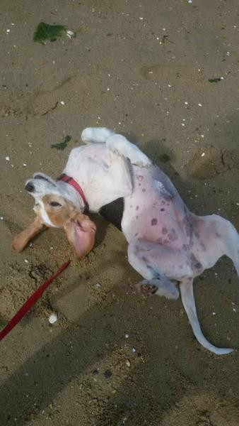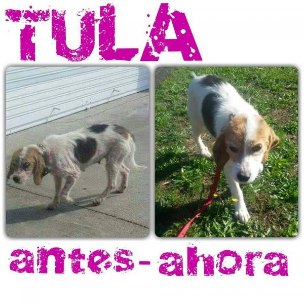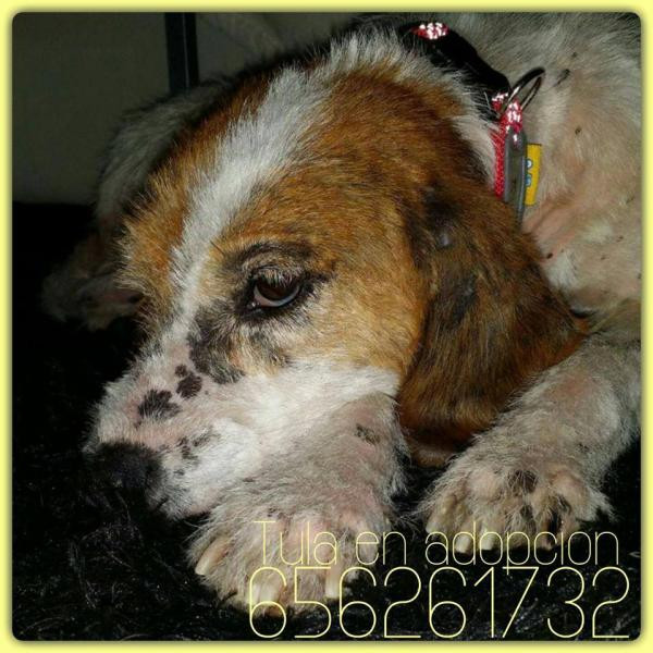 TULA fue encontrada con problemas de piel, y tuvo mucha difusión para encontrar ayuda y quitarla de la calle… porque ese no es hogar para nadie, nadie quiere vivir rogando con la mirada un poco de comida, y gritar piedad a esos vecinos que no dudan en utilizar los palos para no verte merodear sus aceras… es duro cuando ves que tu pelo se cae, cuando nadie cura tus heridas… es muy triste estar solo y tener voces que te recuerdan cada minuto lo miserable que eres, porque uno de ellos fue los que hicieron que llegaras a esa situación, poniendo en tu cuello un collar viejo, un collar atado con bridas… un collar grande que pesaba como una losa del pasado…