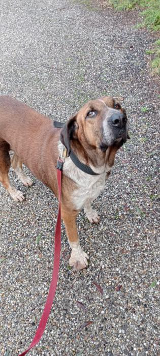 Lo que tiene de grandullona lo tiene de buena!! Tiene hipotiroidismo y necesita medicación diaria pero eso no deja que haga vida normal. Busca una adopción que la cuide para siempre y estará para siempre agradecida.