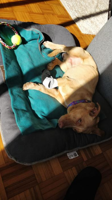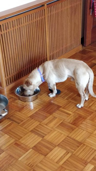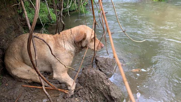 A Higinio atoparono na beira do rio, ten unha pata mal e non podia sair dalí, menos mal que pasaron pola zona paseando e o viron.