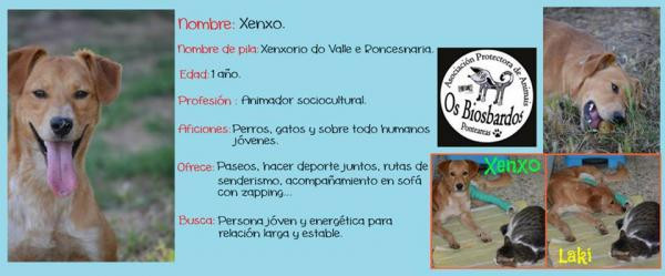 Xenxo é un cachorro moi boiño e sociable, a pesar de todo ten ganas de xogar e comportase perfectamente, non rompe nada e sabe facer as necesides fora do piso. Será de tamaño mediano.