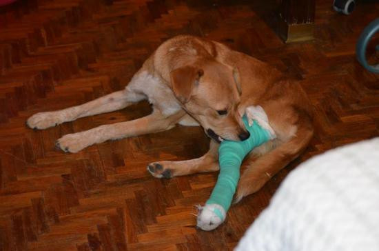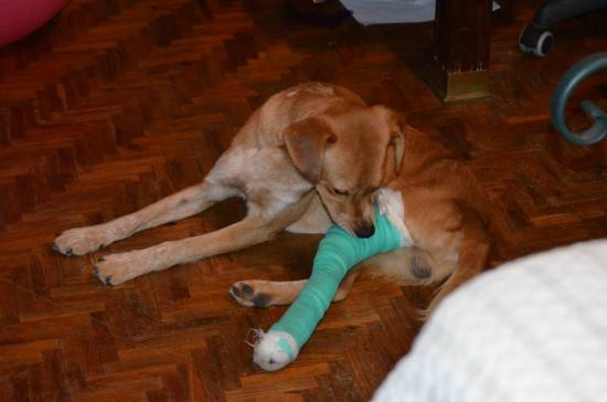Xenxo apareceu atropelado na carretera de Barciademera. Foi a revisión e ademáis do bulto da cabeza ten unha pata traseira rota polo que haberá que operalo .