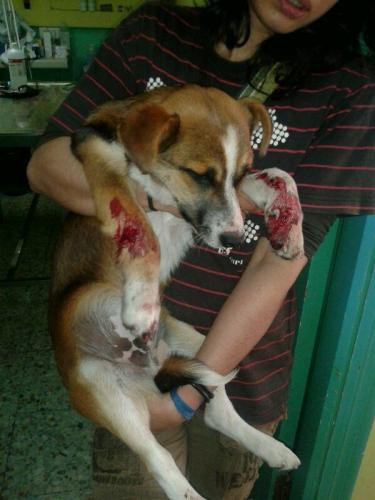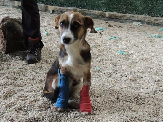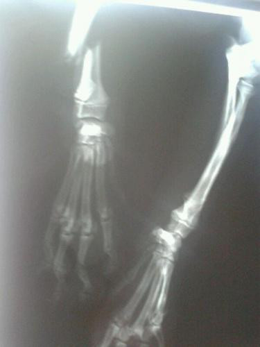Airon tiña unha pata dianteira rota, e tamén os dedos da outra pata.