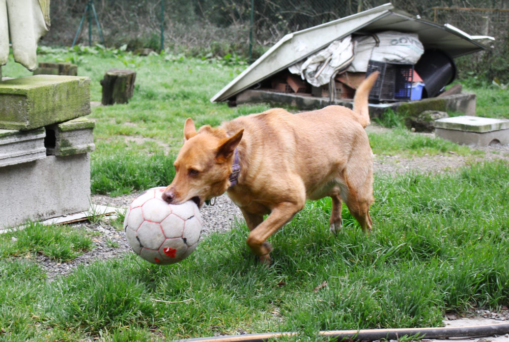 Fufi te está esperando con su pelota en la boca y el corazón lleno de ganas de encontrarte.