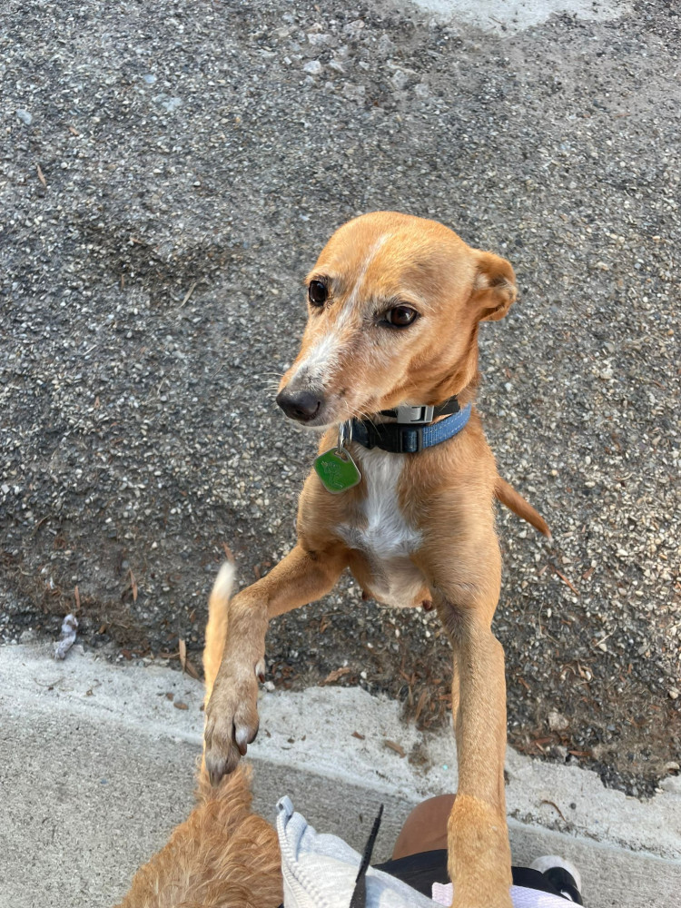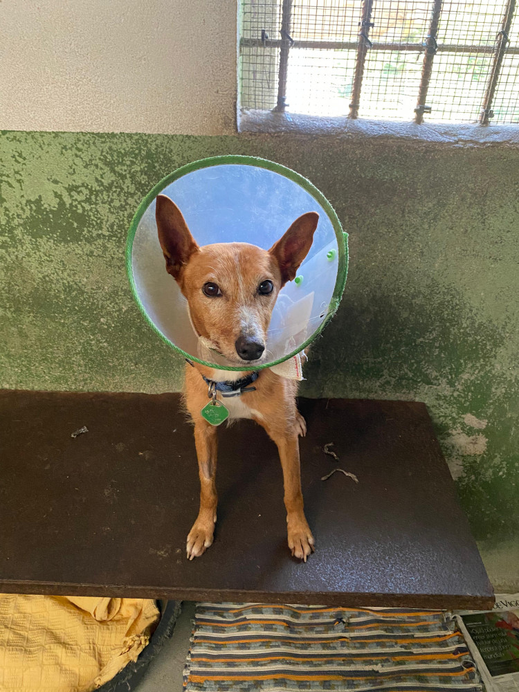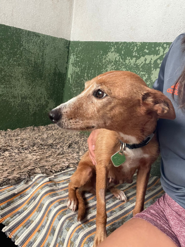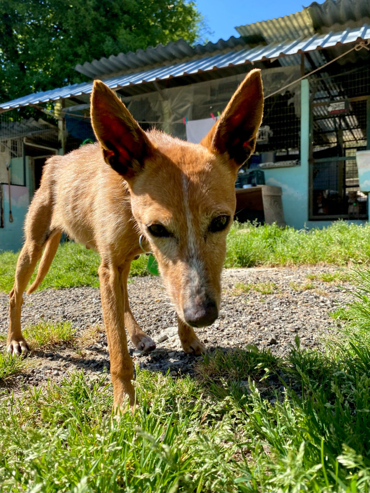 A pesar de haber sido abandonada, no guarda rencor al ser humano y se deja mimar. Le encanta seguirte moviendo el rabito y disfrutar del solete.