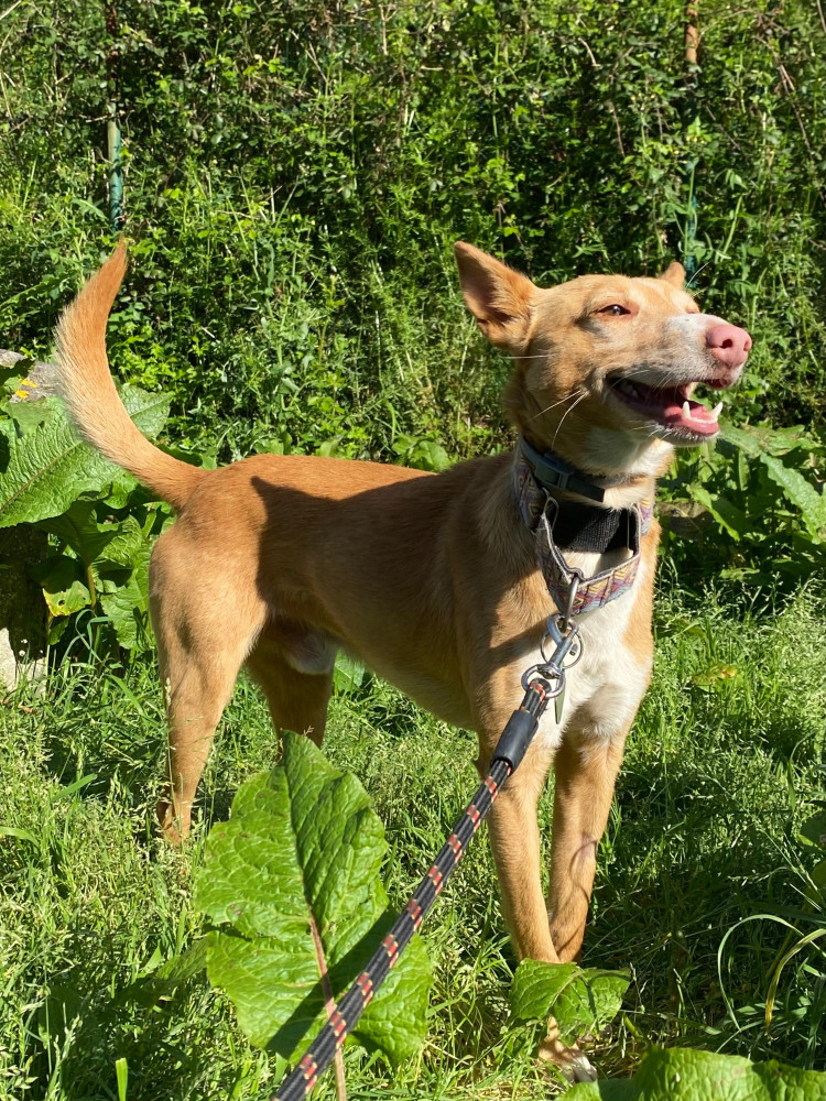 El pequeño Caramel es uno de tantos podenquitos que aparecen sin entender qué está pasando. Quizás escapó o alguien lo abandonó… lo que sabemos fijo es que de primeras tiene miedo. Él, como tantos otros podencos y podencas, se siente desconfiado con las personas que no conoce y es sociable con perr@s.