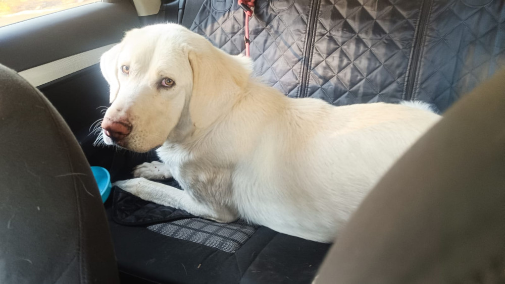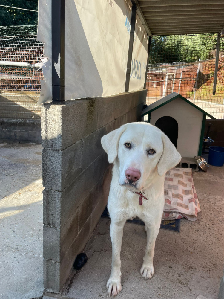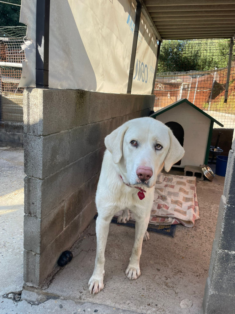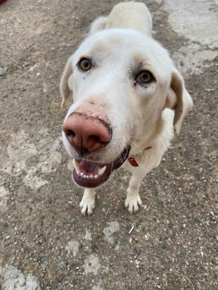 Branco busca adopción ya que se pasó un mes en el monte 馃挃 donde pudo sobrevivir gracias a que un señor iba cada día a echarle de comer pero, como no podía adoptarlo, tuvimos que ir a recogerlo.