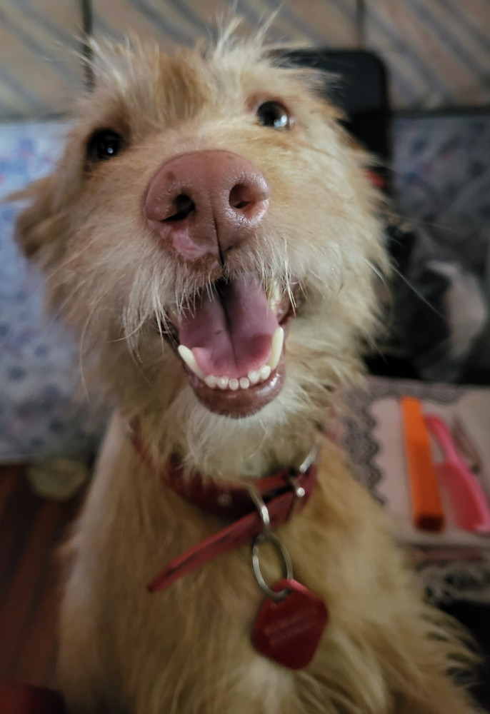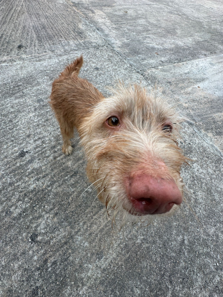 Es una podenquita joven, activa, algo miedosa cuando no conoce, apta con gat@s y niñ@s.