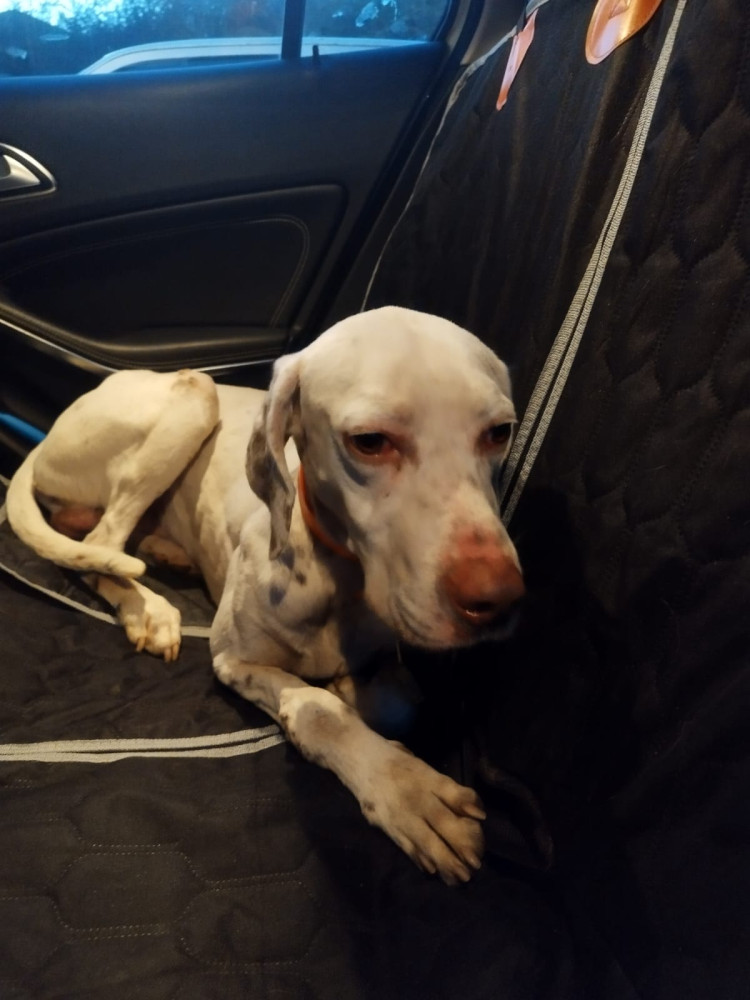 A Travis lo encontraron solo por la calle, lleno de heridas y muy, muy delgado. Aun así, se dejó coger y ayudar para llevarlo a un veterinario.🙏